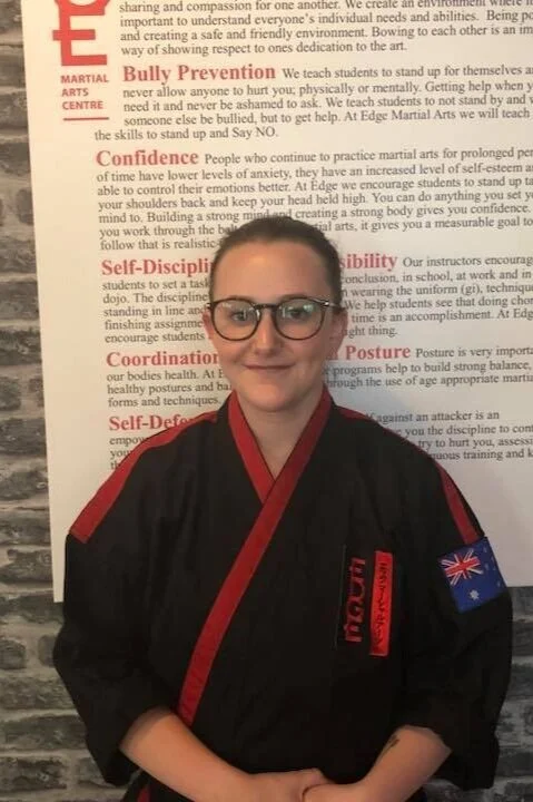 Sempai Samantha credits the focus and determination that she has gained from her training at Edge to help her through some tough challenges in her life. She loves training and teaching at Edge because it has a wonderful family feel and the team is always positive and motivating. Sempai Samantha assists teaching in the children’s programs and loves the atmosphere the children bring into the dojo. She enjoys watching them grow and complete the tasks given to them with a smile on their face. Sempai Samantha is always at the dojo with a smile of her face and loves welcoming new students to the school.
